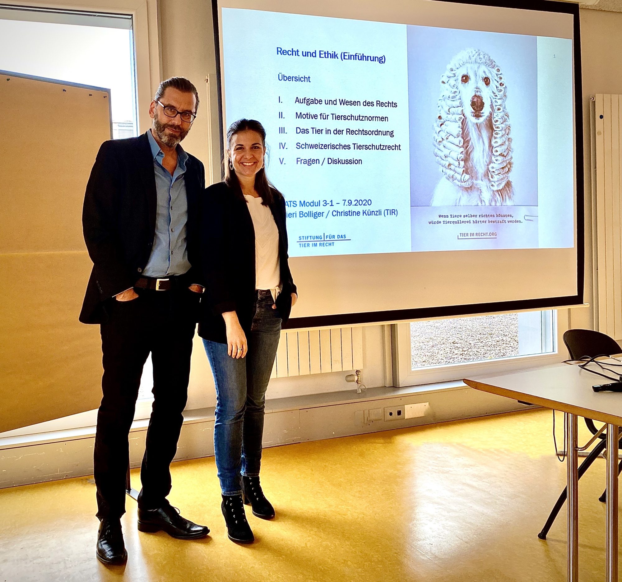 Am 7. und 8. September durften unsere TIR-Juristen Christine Künzli und Gieri Bolliger im Rahmen des VATS-Lehrgangs "Fachperson Tierschutz" in Winterthur ausführlich zum Themenbereich "Tier im Recht" referieren. Die Veranstaltung wurde von allen Mitwirkenden als grosser Erfolg gewertet.