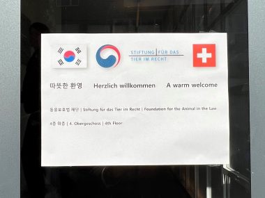 Im Juli durfte die Stiftung für das Tier im Recht (TIR) eine Delegation von offiziellen Regierungsvertretern der Republik Korea begrüssen. Dabei wurden vor allem die Ausgestaltung des Tierschutzrechts in der Schweiz und der entsprechende Vollzug diskutiert. Weitere Themen waren die politische Tierschutzarbeit, Ausbildungspflichten für Tierhaltende und die Sensibilisierungskampagnen der TIR.