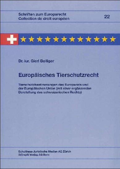 Bolliger Gieri, Europäisches Tierschutzrecht – Tierschutzbestimmungen des Europarats und der Europäischen Union (mit einer ergänzenden Darstellung des schweizerischen Rechts), Schriften zum Europarecht, Band 22, Schulthess Juristische Medien AG Zürich, Stämpfli Verlag AG, Bern 2000, 475 S.; ISBN-3 7255 4189 2.
