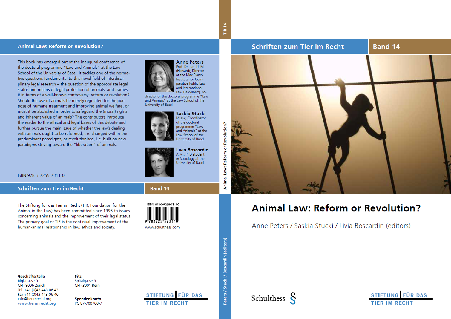 School of the University of Basel. It tackles one of the normative questions fundamental to this novel field of interdisciplinary legal research – the question of the appropriate legal status and means of legal protection of animals, and frames it in terms of a well-known controversy: reform or revolution? Should the use of animals be merely regulated for the purpose of humane treatment and improving animal welfare, or must it be abolished in order to safeguard the (moral) rights and inherent value of animals? The contributors introduce the reader to the ethical and legal bases of this debate and further pursue the main issue of whether the law’s dealing with animals ought to be reformed, i. e. changed within the predominant paradigms, or revolutionised, i. e. built on new paradigms striving toward the “liberation” of animals.