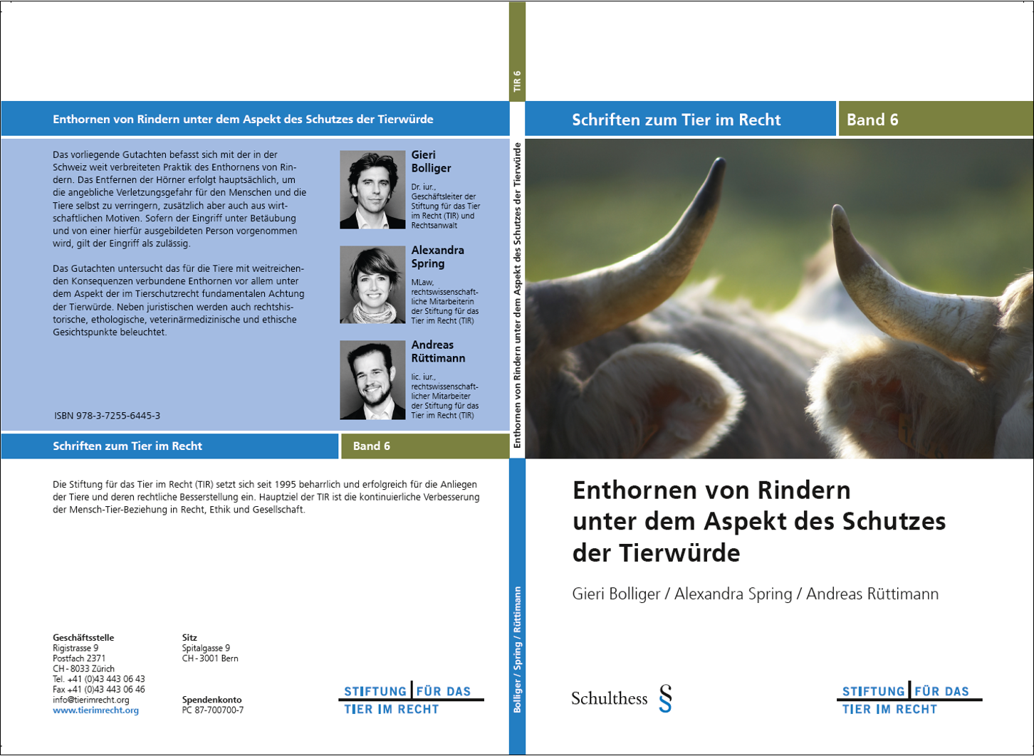 Das Gutachten untersucht das für die Tiere mit weitreichenden Konsequenzen verbundene Enthornen vor allem unter dem Aspekt der im Tierschutzrecht fundamentalen Achtung der Tierwürde. Neben juristischen werden auch rechtshistorische, ethologische, veterinärmedizinische und ethische Gesichtspunkte beleuchtet.