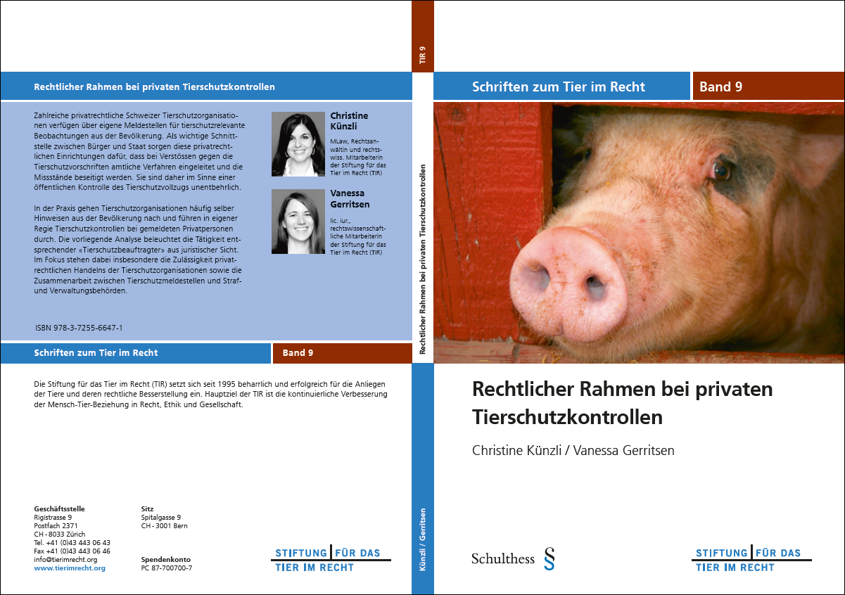 Die Stiftung für das Tier im Recht (TIR) unterhält seit 2003 eine Datenbank mit sämtlichen dem Bundesamt für Lebensmittelsicherheit und Veterinärwesen (BLV) seit 1981 gemeldeten Schweizer Tierschutzstrafentscheiden. Jedes Jahr analysiert die TIR das Fallmaterial des Vorjahres eingehend und präsentiert die Resultate in einem ausführlichen Bericht über die Entwicklungen und Tendenzen der Schweizer Tierschutzstrafpraxis.