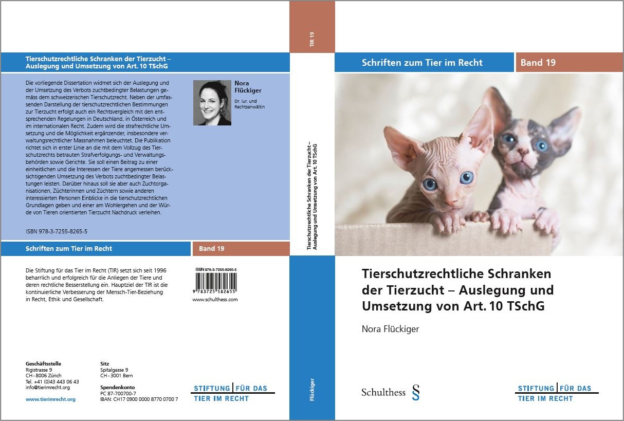 Die vorliegende Dissertation widmet sich der Auslegung und der Umsetzung des Verbots zuchtbedingter Belastungen gemäss dem schweizerischen Tierschutzrecht. Neben der umfassenden Darstellung der tierschutzrechtlichen Bestimmungen zur Tierzucht erfolgt auch ein Rechtsvergleich mit den entsprechenden Regelungen in Deutschland, in Österreich und im internationalen Recht. Zudem wird die strafrechtliche Umsetzung und die Möglichkeit ergänzender, insbesondere verwaltungsrechtlicher Massnahmen beleuchtet. Die Publikation richtet sich in erster Linie an die mit dem Vollzug des Tierschutzrechts betrauten Strafverfolgungs- und Verwaltungsbehörden sowie Gerichte. Sie soll einen Beitrag zu einer einheitlichen und die Interessen der Tiere angemessen berücksichtigenden Umsetzung des Verbots zuchtbedingter Belastungen leisten. Darüber hinaus soll sie aber auch Zuchtorganisationen, Züchterinnen und Züchtern sowie anderen interessierten Personen Einblicke in die tierschutzrechtlichen Grundlagen geben und einer am Wohlergehen und der Würde von Tieren orientierten Tierzucht Nachdruck verleihen.