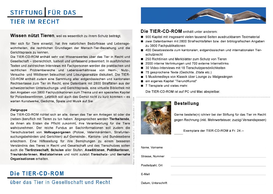 Bestellen Sie Ihre TIER-CD-ROM zum günstigen Preis von CHF 24.- / € 16.- (zzgl. Versand) jetzt im Online-Shop.
